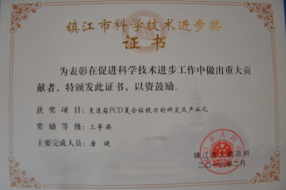 多年來(lái),企業(yè)通過ISO9001國(guó)際質(zhì)量體系認(rèn)證,被中國(guó)中輕產(chǎn)品質(zhì)保中心授予“全國(guó)金剛石制造行業(yè)質(zhì)量放心滿意單位”,獲得江蘇省高新技術(shù)企業(yè)稱號(hào),榮獲江蘇省小巨人稱號(hào),變速箱PCD復(fù)合鉆鉸刀獲省高新技術(shù)產(chǎn)品等等。